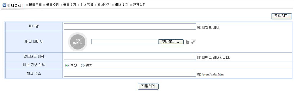 | (1) 배너추가 페이지에서는 새로운 배너를 추가할 수 있습니다. |