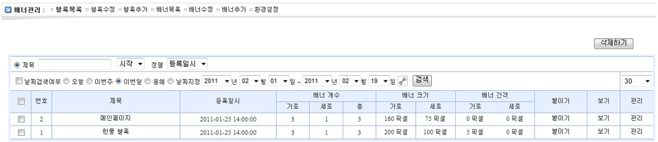 ① 배너 하단의 ‘배너수정’ 버튼을 클릭하면 배너목록이 새창으로 뜹니다.