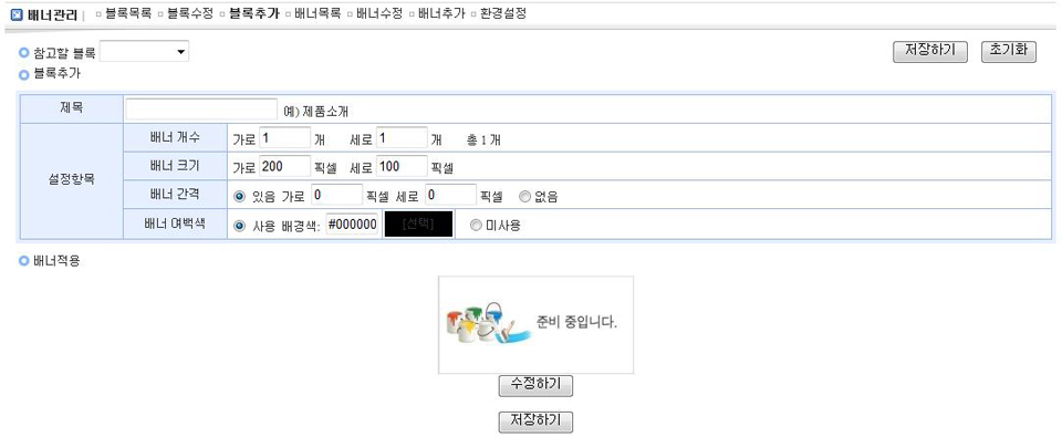 (4) 새로운 블록에 적용할 배너를 추가, 수정할 수 있습니다. 단, 배너를 추가하지 않고 블록만 추가할 수 있습니다.