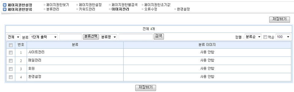 (4) 권한관리 : 해당 분류에 권한을 적용하고자 할 때는 사용함을 설정합니다.
