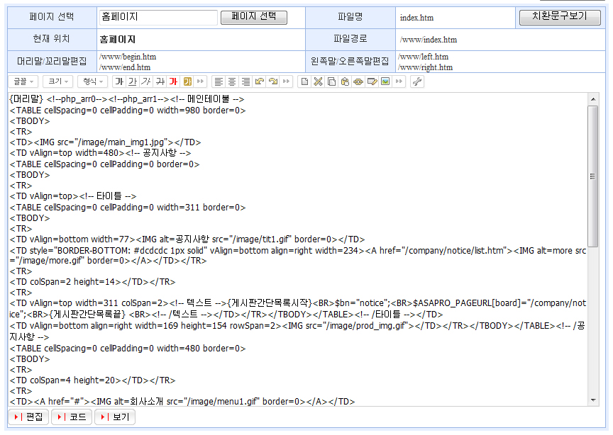 HOME > 호스팅 > 아사프로2.0 > 아사프로2.0 > 편집기기능