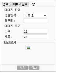 이미지삽입 : 본문 페이지에 이미지를 삽입할 수 있으며, 업로드된 경로 수정 및 이미지의 정렬, 모양에 대한 설정을 할 수 있다.