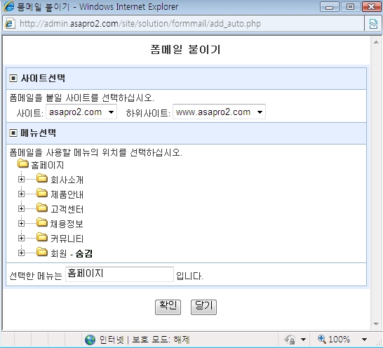HOME > 호스팅 > 아사프로2.0 > 솔루션관리 > 폼메일관리 > 폼메일관리 |