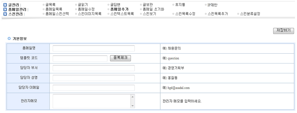 | (1) 폼메일추가는 사용할 폼메일을 등록하는 페이지입니다. |