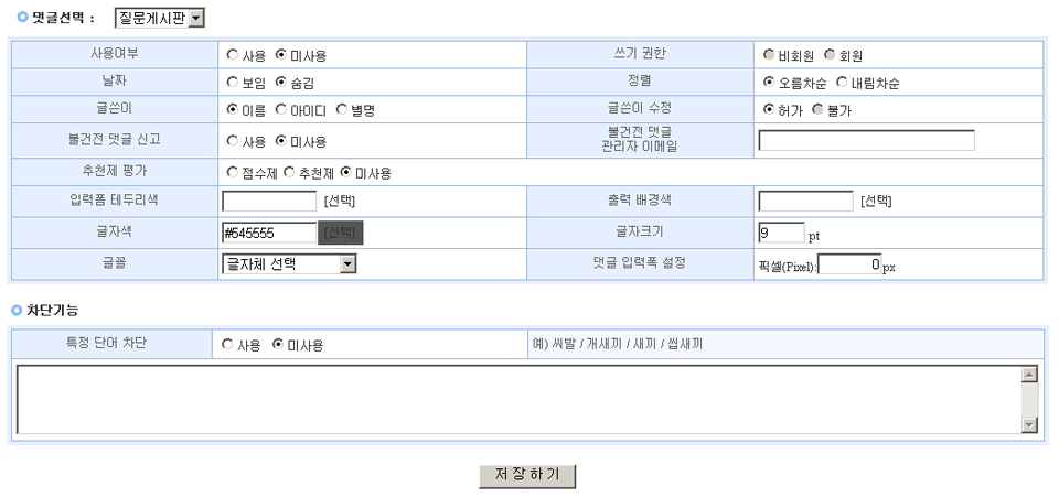 HOME > 호스팅 > 아사프로2.0 > 솔루션관리 > 댓글관리 > 환경설정