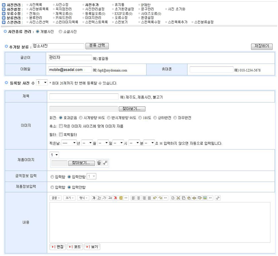 (1) 사진을 추가할 수 있는 페이지입니다.