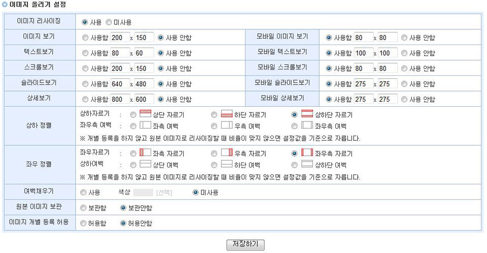 (6) 이미지 올리기 설정에서는 이미지의 개수, 이미지의 크기, 정렬, 여백 채우기 등을 설정할 수 있습니다.
