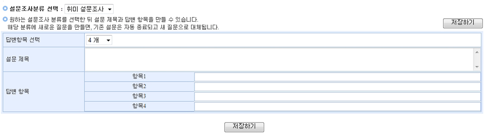 (1) 설문조사분류 선택에서 추가할 질문의 분류를 선택합니다.