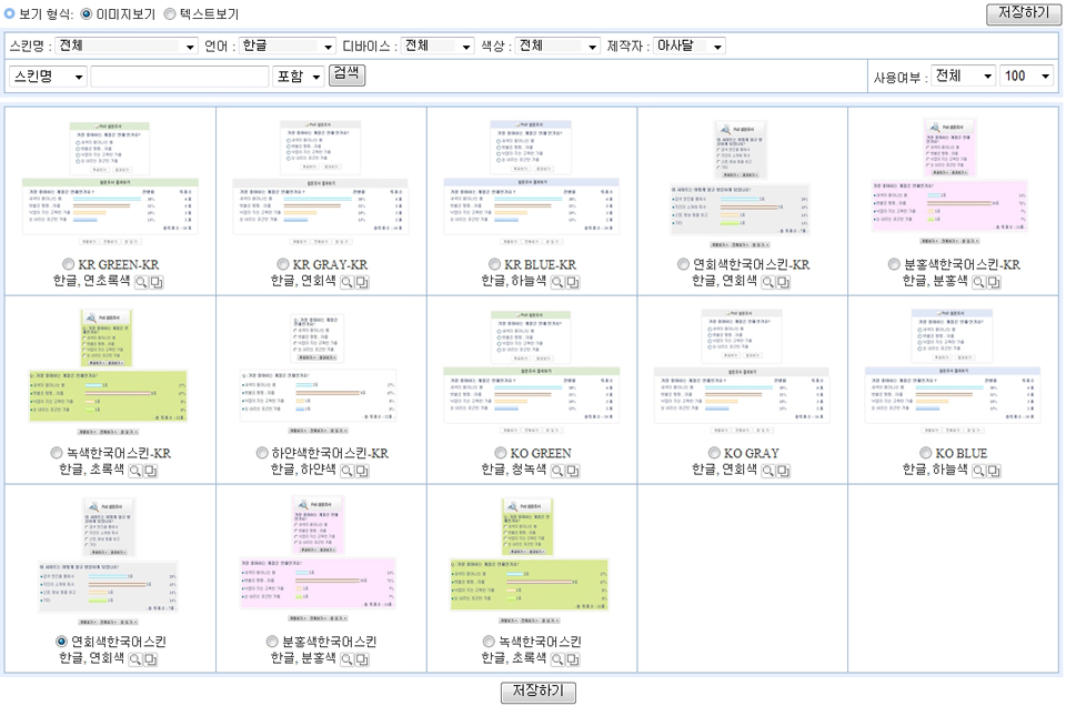 HOME > 호스팅 > 아사프로2.0 > 솔루션관리 > 설문조사관리 > 설문스킨관리 |