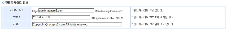 | (2) 사이트 주소에는 관리자사이트의 URL을 써 주시면 됩니다. |