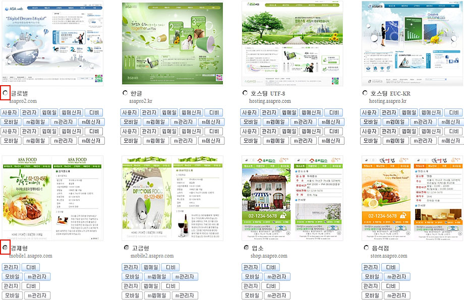 * 선택된 프로토 변경하기를 클릭하거나 프로토이미지보기를 클릭하시면 아래와 같이 초기화 가능한 프로토 목록이 보입니다.