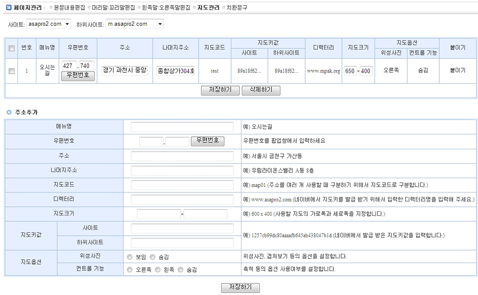 HOME > 호스팅 > 아사프로2.0 > 웹빌더관리 > 페이지관리 > 지도관리 |