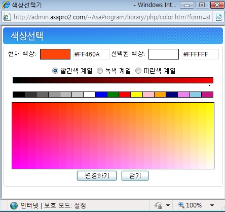 (3) 글자색상, 바탕색도 바꿀 수 있습니다. 글자색상 오른쪽의 선택과 바탕색 오른쪽의 선택 버튼을 클릭하면 다음과 같이 색상선택기 창이 나타나 글자색상과 바탕색을 선택할 수 있습 니다. |