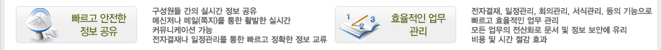 누구나 사용하기 쉽고 편리한 그룹웨어는 다음과 같은 장점이 있습니다.