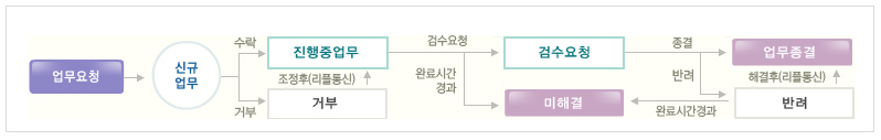 개인간업무협조 업무관리에 있어서 필요한 업무를 요청 또는 확인할 수 있으며 주요 업무를 한 눈에 파악할 수 있습니다.
