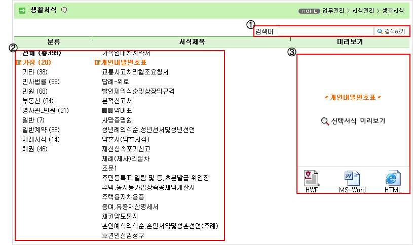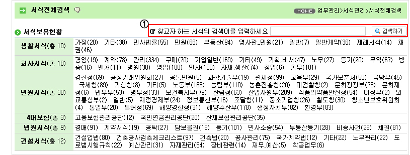 ② 분류별로 서식 제목을 볼 수 있습니다.