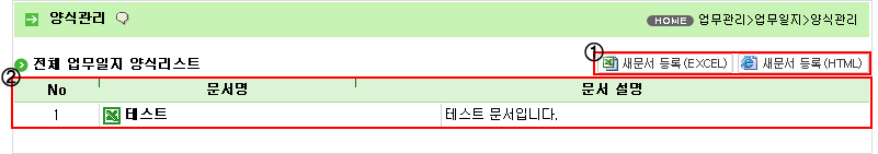 ② 전체 업무 일지 양식 목록을 볼 수 있습니다.
