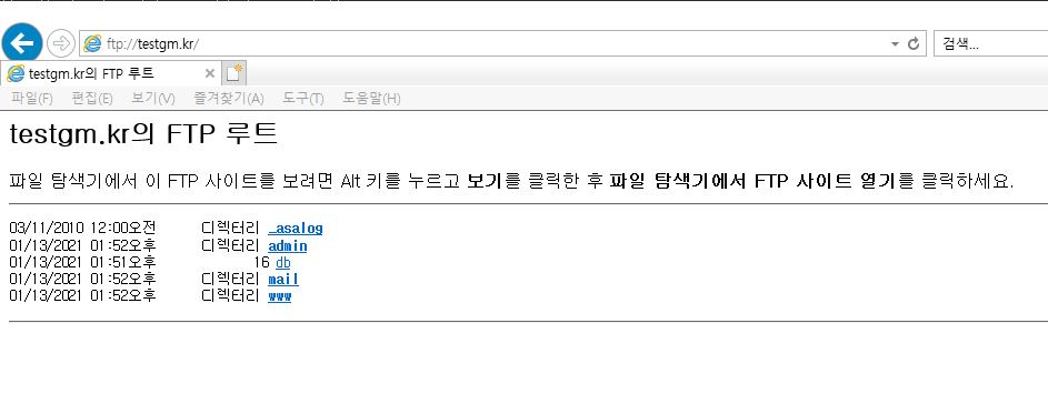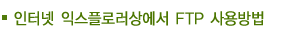 이것은 FTP 프로그램이 없을 때 별도의 프로그램 설치 없이도 쉽게 사용할 수 있는 방법입니다. 여러가지 편리한 기능을 사용하고 싶다면 FTP 전용프로그램으로 접속해야 되지만 간단한 파일 전송 작업이면 아주 유용하게 사용할 수 있습니다.