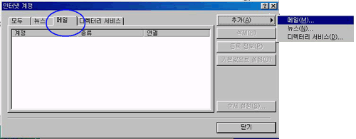 계정 방식 이메일은 윈도우즈에 기본으로 설치되는 아웃룩 익스프레스를 이용해서 받아보시면 됩니다. |