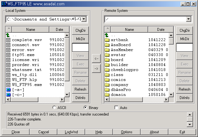 - 모든 파일이 잘 업로드 되었으면 하단의 [Close] 단추를 눌러 접속을 끊고 프로그램을 종료시킵니다.