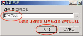 - 압축풀기 : 내려받은 파일 ftp95.exe 를 두 번 클릭하면 아래와 같은 화면이 뜹니다. 압축을 풀 디렉터리를 선택한 후 시작 버튼을 누릅니다.