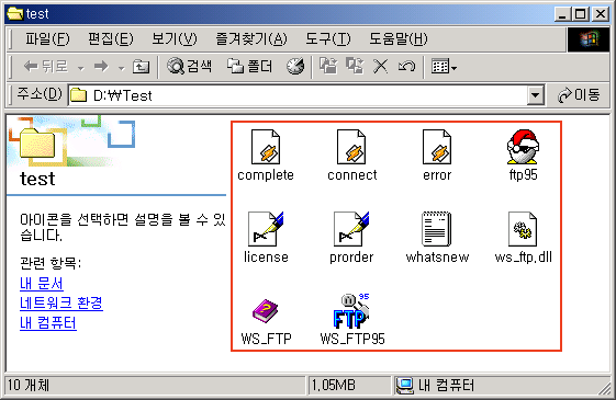 - 아래와 같이 압축이 풀려 FTP 프로그램 관련 파일들이 선택한 디렉터리에 보일 것입니다. 이로써 프로그램 설치가 완료되었습니다.