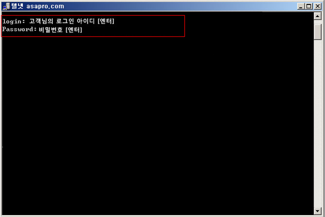 (텔넷 이용방밥에 대한 자세한 내용은 서버사용법의 텔넷페이지를 참고하십시오.)