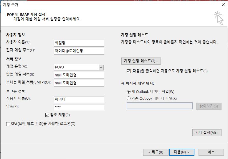 - 보내는 메일 부분에 mail.고객님의 도메인명을 입력합니다.