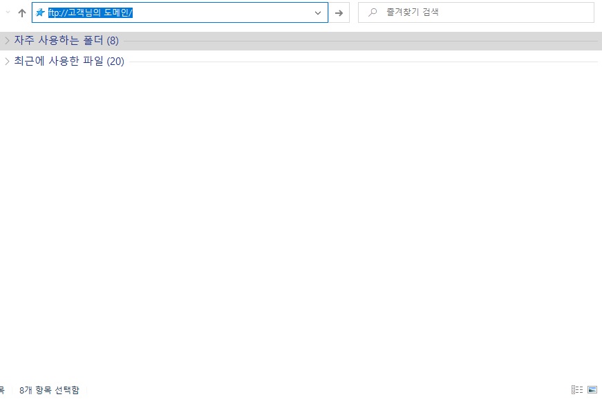 파일 업로드는 인터넷 익스플로러를 이용하시거나 FTP 프로그램을 이용하시면 됩니다. 인터넷 익스플로러 주소창에 [ftp://고객님의 도메인]을 입력하고 엔터를 치십시오. |