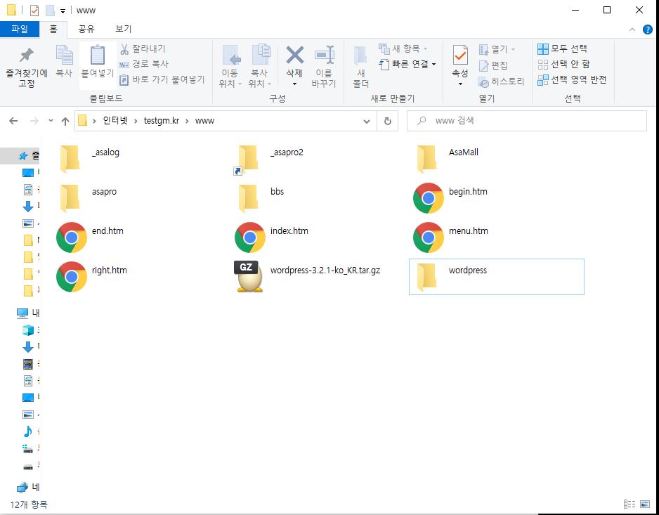 접속된 화면에 다운로드 받은 워드프레스 파일을 드래그하여 올리시면 서버로 복사가 됩니다. |