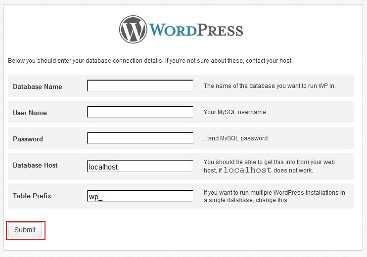아래화면에 나오는 데이터베이스 계정룰 입력 후 [Submit]을 클릭합니다.