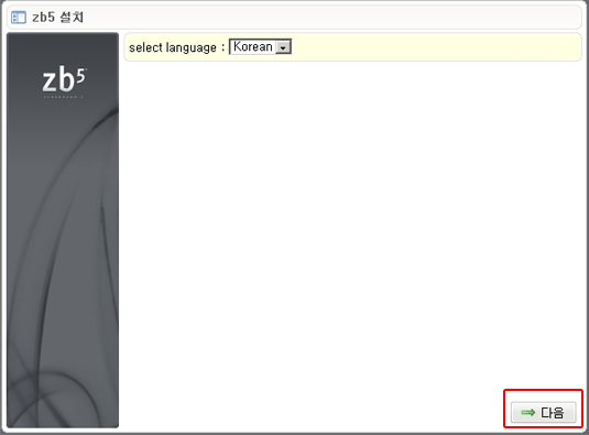 인터넷 익스플로러로 http://고객님의 도메인명/zb5/ 사이트에 들어가면 아래와 같은 화면이 보입니다.