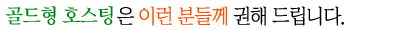 |  저렴한 비용으로 트래픽, 용량에 대한 걱정없이 사이트 운영을 하시고 싶은 분들에게 추천합니다.