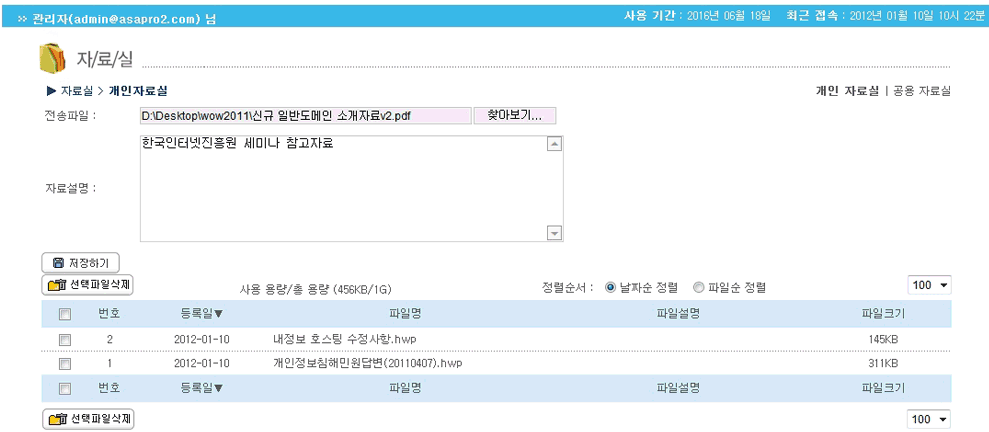 - 업무용 자료 또는 개인용 자료를 자료실에 올려 놓고 언제 어디서는 확인하고 수정 등 작업을 할 수 있습니다. |