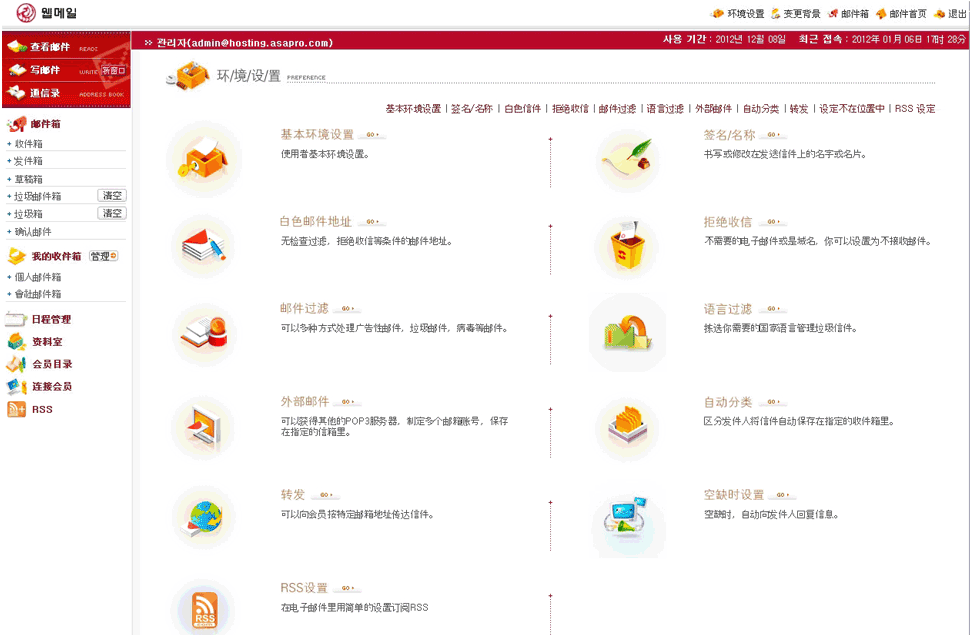 - 중국어로 번역된 중국어 웹메일 스킨을 제공하고 있습니다. 또한 일본어 사용자를 위한 일본어 스킨을 제공합니다.