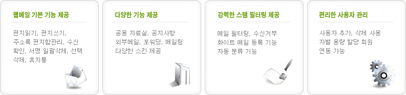 아사달을 통해 도메인을 등록했거나 아사달로 도메인을 이전하였을 경우 도메인으로 생성된 무료 웹메일 서비스를 이용하실 수 있습니다. 무료 웹메일은 신청일로부터 1년 간 무료로 서비스를 이용하실 수 있으며, 도메인을 계속 유지할 경우 무료 웹메일 서비스 또한 계속 제공 받게 됩니다. 인터넷이 접속되는 곳이라면 언제 어디서나 웹메일에 접속해 메일을 확인하실 수 있습니다. | |