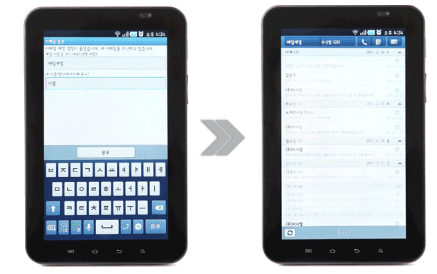 3. 이메일 설정 메뉴에서 이메일 주소와 비밀번호를 입력한 후 수동설정 버튼을 누릅니다. |