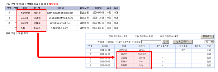 즉, 회원관리의 경우 회원정보에서 사용하던 begin.htm, end.htm 등의 디자인 및 가입폼 등의 환경설정 값은 이전되지 않으며,