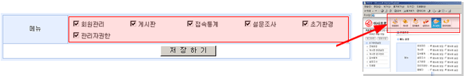 관리자 모드의 상단 메뉴를 설정에 따라 보이거나 숨길 수 있습니다. 체크를 해제할 경우 해당 메뉴의 링크가 숨겨지므로 주의하여 설정하시기 바랍니다.