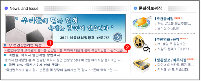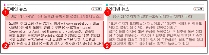 이번에는 그림과 같이 원하는 페이지에 게시판에 올라온 글의 ①제목②내용의 일부가 나오도록 해 봅시다.