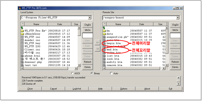 2. begin.htm(전체머리말) 파일과 end.htm(전체꼬리말) 파일이 있을 것입니다. 이 파일을 내려 받습니다.
