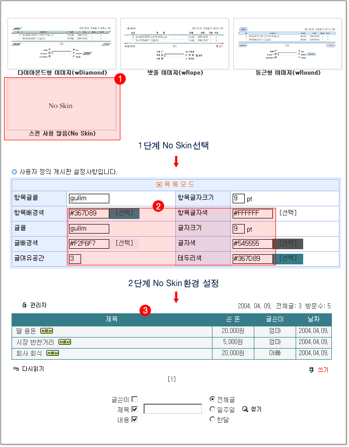 스킨 변경 및 제작 방법을 익히시고 원하는 게시판 스킨으로 여러분의 사이트를 만들어 보십시오.