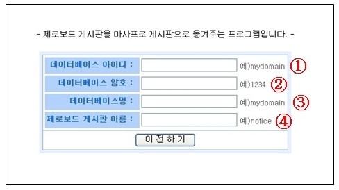 (질문) 4. 옮겨올 제로보드 게시판의 영문명을 입력하십시오