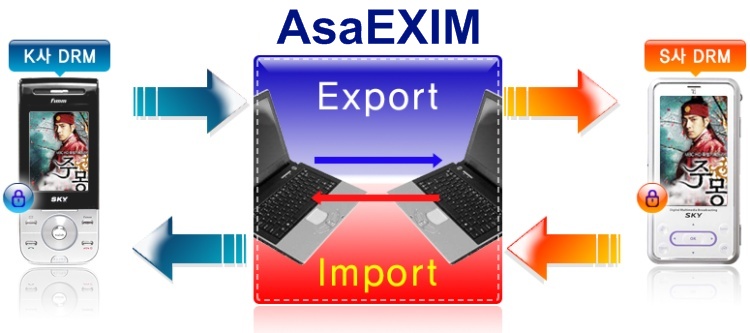 아사엑심은 멀티플랫폼 DRM이 가지고 있는 호환성 문제를 해결하기 위한 프로그램입니다.
