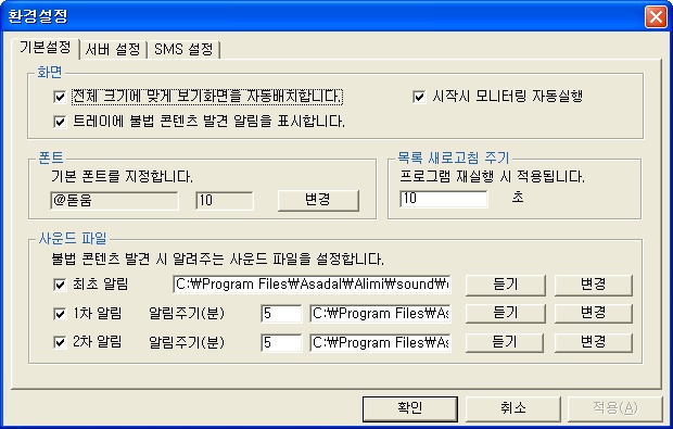 SMS 발송 : 불법 콘텐츠 발견 시 등록된 관리자 전화번호로 SMS를 전송합니다.