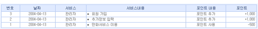 • 포인트내용 : 포인트의 사용형태입니다. ("포인트 추가, 환불, 취소, 사용"으로 구분됩니다.)