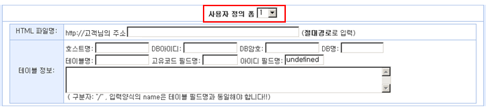 솔루션에서 제공되는 항목이외의 추가항목이 많을 경우 파일로 만들어서 경로를 입력하고 테이블정보 입력란에 필요한 정보를 입력하시면 됩니다. 최대 10개 항목까지 추가 가능합니다. |