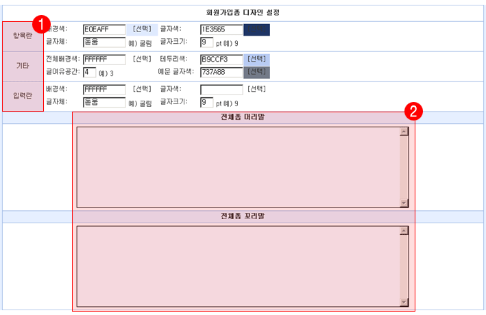 가입폼에 대한 디자인을 설정할 수 있습니다. |