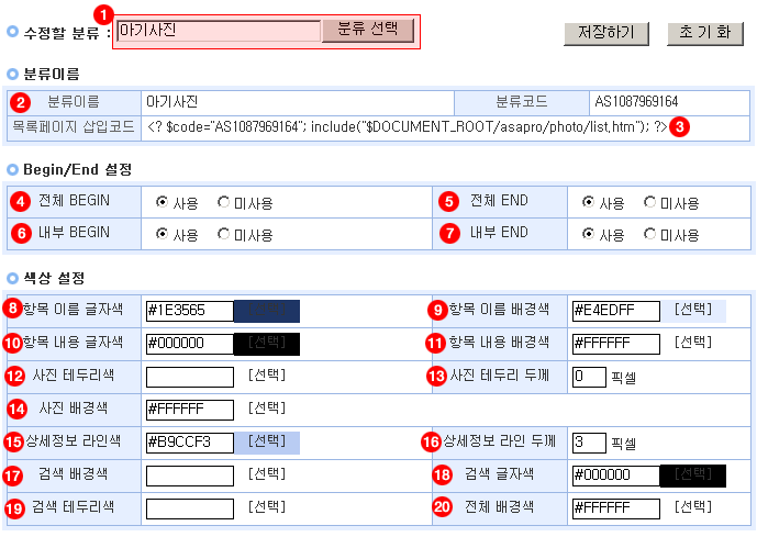 2. 분류이름 : 디자인설정할 분류 이름을 확인합니다