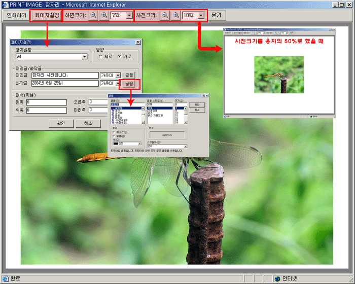 - 웹페이지 전체를 프린트하는 방식이 아닌 웹에서 바로 사진만 인쇄할 수 있습니다.